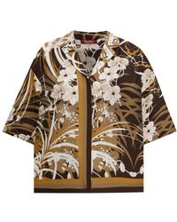 Ga naar MiintoMax Mara Studio presenteert een overhemd van zijden crêpe de Chine met een all-over print en verfijnde dubbele knopen van emailmetaal aan de manchetten, ideaal voor een verzorgde alledaagse en zakelijke look. Belangrijkste