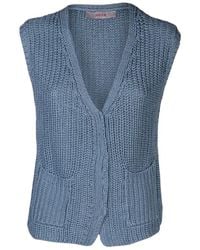 Ga naar MiintoDe Mes Demoiselles Movi Gilet is een maxi lang vest in retro-geïnspireerde violet- en natuurlijke tinten, afgewerkt met fijne jacquardmotieven en een subtiele lurexglans. Ontworpen als een opvallend laagjesitem, geschikt voor looks van