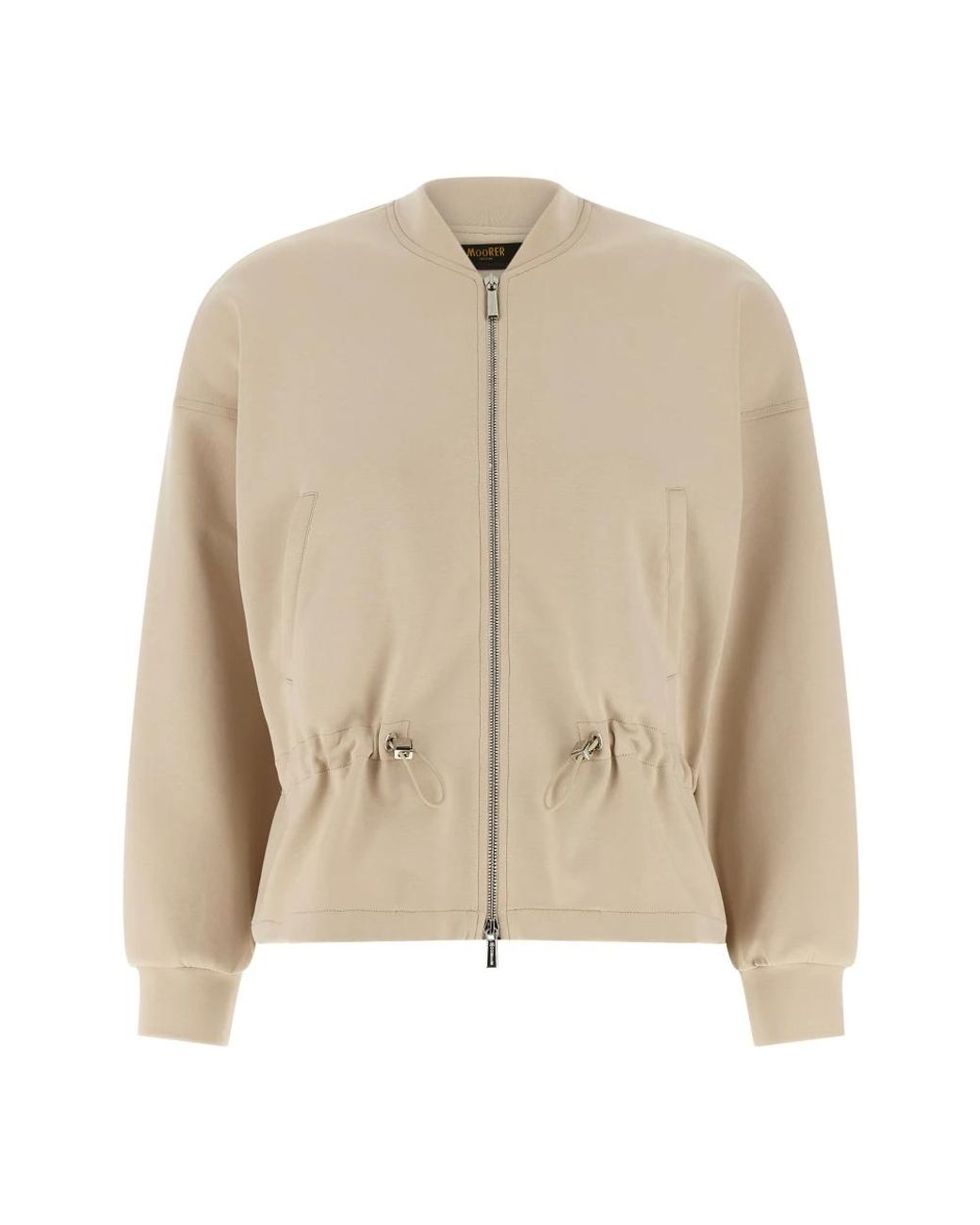 De Moorer Tija Sweatshirt is een moderne sweatshirt in bomberstijl, vervaardigd van Supima stretch katoen interlock jersey. Het biedt een zachte, rekbare laag met een hoge hals en verstelbare taille, ideaal voor vrije tijd en reizen. Belangrijkste kenmerken: Beige | Supima katoen | Stretch stof | Zacht gevoel | Elastische interlock jersey | Ritssluiting aan de voorkant | Metalen rits met dubbele schuiver | Paspelzakken | Verstelbaar trekkoord in de taille | Bomber-stijl kraag | Hoge hals | Lange mouwen met manchetten | Verlaagde schouders | Afmetingen & pasvorm: Valt normaal qua maat. | Samenstelling & verzorging: 76% katoen | 19% polyester | 5% elastaan | Machinewas max. 30°C. Niet bleken. Strijken op maximaal 110°C. Niet in de droogtrommel. Kleur: naturel