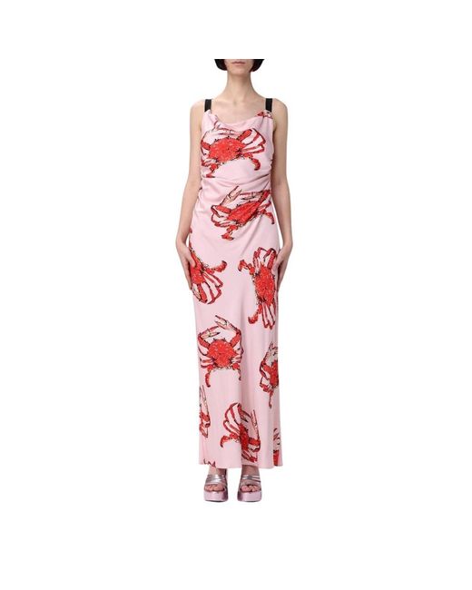 Kleedjes ,Roze ,Roze Zijden Maxi Jurk Met Krab Print in het rood voor dames