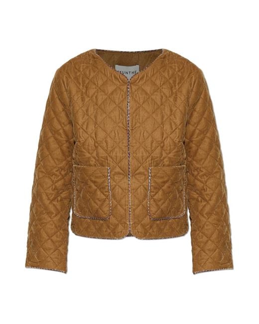 Profiteer van de beste deals! Het LIZETTA-jack van Munthe is een verfijnde keuze voor kenners van verfijnde elegantie. De boxy pasvorm, met licht uitlopende mouwen en een discrete, ronde halslijn zonder kraag, benadrukt het tijdloze karakter van dit ontwerp. De hele jas is versierd met een regelmatig doorgestikt diamanten patroon, waardoor een uniek motief ontstaat dat subtiel de prestigieuze uitstraling van dit stuk benadrukt. De gebruikte stof, met zijn matte afwerking en vervaardigd uit hoogwaardig polyester, verrukt met zijn zachtheid en nobele textuur. Twee voorzakken gecombineerd met nauwgezette, veelkleurige contrasterende biezen maken deze jas echt uniek. Het binnenlabel met het logo van de ontwerper benadrukt oog voor detail en de vooraanstaande reputatie van een merk geworteld in de tradities van Deens vakmanschap en kunst. Waarom DIT Product Kopen? * Unieke, boxy pasvorm en exclusieve details. * Uitzonderlijk prettig aanvoelende, premium matte stof. * Elegante, veelzijdige stijl voor vele gelegenheden. * Onderscheidende accenten in de vorm van contrasterende biezen. * Ontworpen door het gerenommeerde Deense merk Munthe. Modelmaten Hoogte: 176 cm Buste: 85 cm Taille: 60 cm Heupen: 89 cm Model draagt maat: 36 Kleur: bruin