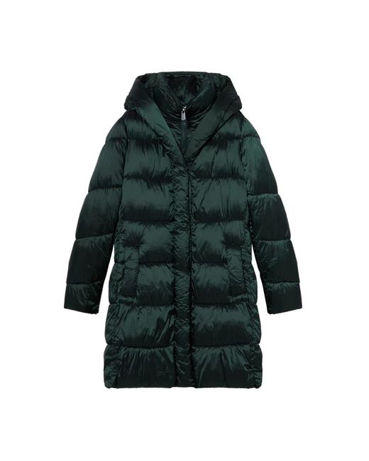 Lange Nylon Donsjas Met Capuchon in het groen voor dames