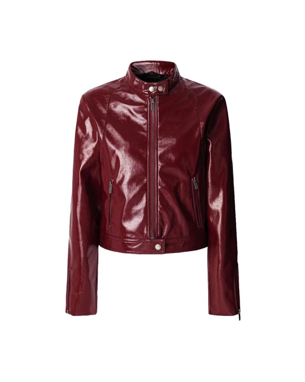 De Pepe Jeans Ruby Jacket combineert een glanzende lakleren afwerking met een gestroomlijnde mandarijnkraag voor een gedurfde, urban look. Ontworpen voor dagelijks gebruik met praktische sluitingen en zakdetails. Belangrijkste kenmerken: Bourgondië | Leer | Rits aan de voorkant | Rits- en drukknoopsluiting | Zijzakken met ritssluiting | Verstelbare manchetten met ritssluiting | Mandarijnkraag | Lakleren afwerking | Pepe Jeans-logo in reliëf | Samenstelling en verzorging: Leer Kleur: rood