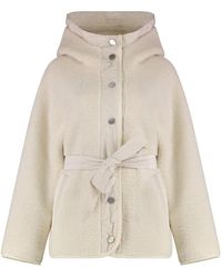 Ga naar MiintoProfiteer van de beste deals! Blijf gezellig en stijlvol in deze off-white shearling effect jas van Pinko. Met een snap-knoopsluiting, capuchon, gewatteerd paneel en verborgen zakken is deze jas perfect voor de modebewuste vrouw. Kleur: naturel