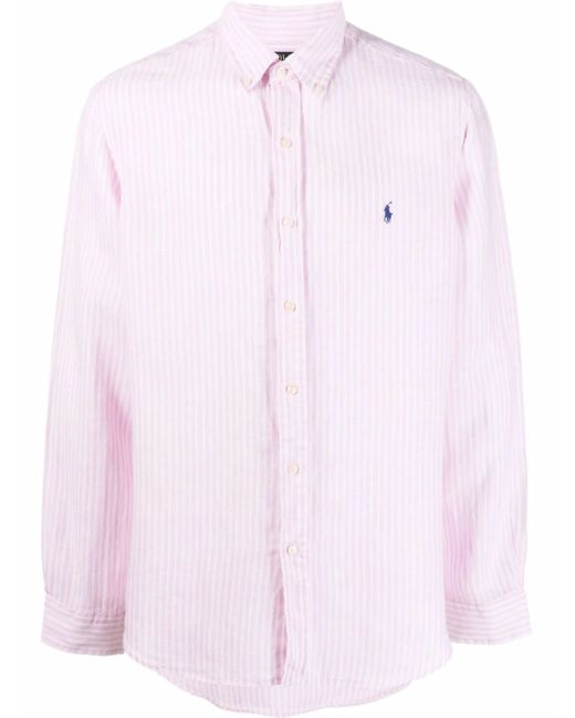 Polo Ralph Lauren Polo Pony striped shirt. Linen/Flax 100% LINEN. Kleur: roze