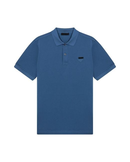 De Prada Cotton Polo with Logo is een verfijnde polo, ontworpen voor dagelijks gebruik. Dit item combineert een klassiek polo silhouet met het kenmerkende driehoeklogo van het merk, voor een smart-casual basisstuk. Belangrijkste kenmerken: Lichtblauw | Blauw | Katoen | Halve knoopsluiting | Polokraag | Korte mouwen | Geribbelde gebreide kraag en mouwboorden | Geëmailleerd metalen driehoeklogo op de borst | Piqué gebreide textuur | Samenstelling & verzorging: 100% katoen