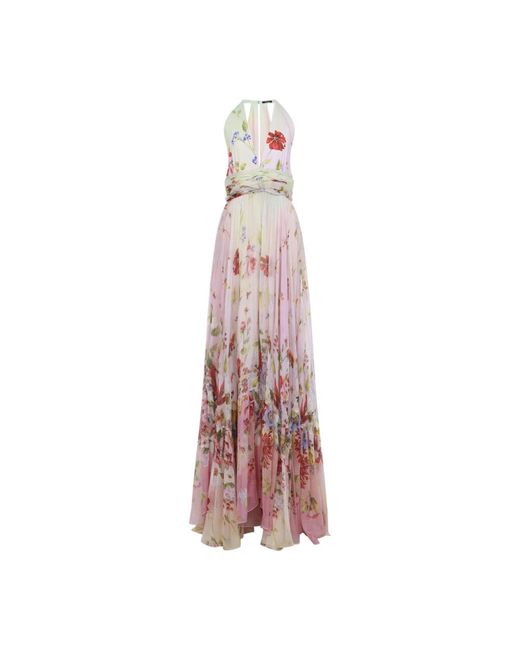 Lange Chiffon Jurk Met Miami Bloemenprint in het roze voor dames