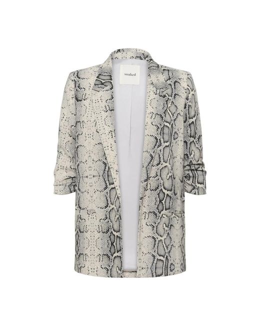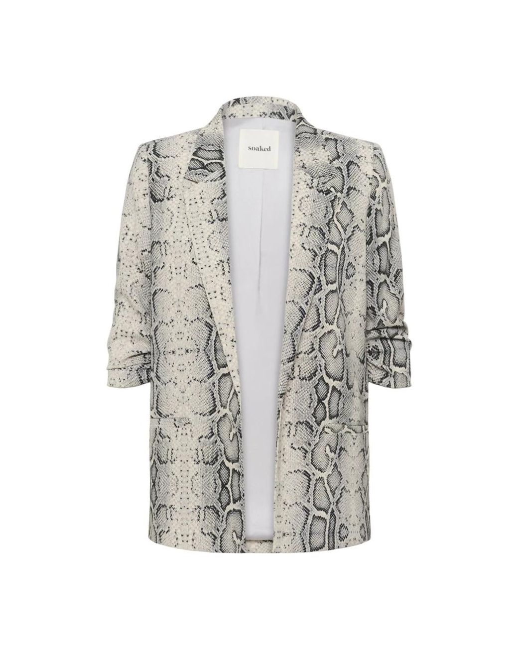 De Soaked in Luxury SLShirley Printed Blazer combineert een getailleerd silhouet met een opvallende slangenprint voor een verzorgde, trendy gelaagde look. Ideaal voor smart-casual outfits en avondlooks waarbij een gedurfd patroon het middelpunt is. Belangrijkste kenmerken: Multicolor | Grijze slangenprint | Gedrukt ontwerp | Slangenprintpatroon | Blazer silhouet Kleur: grijs