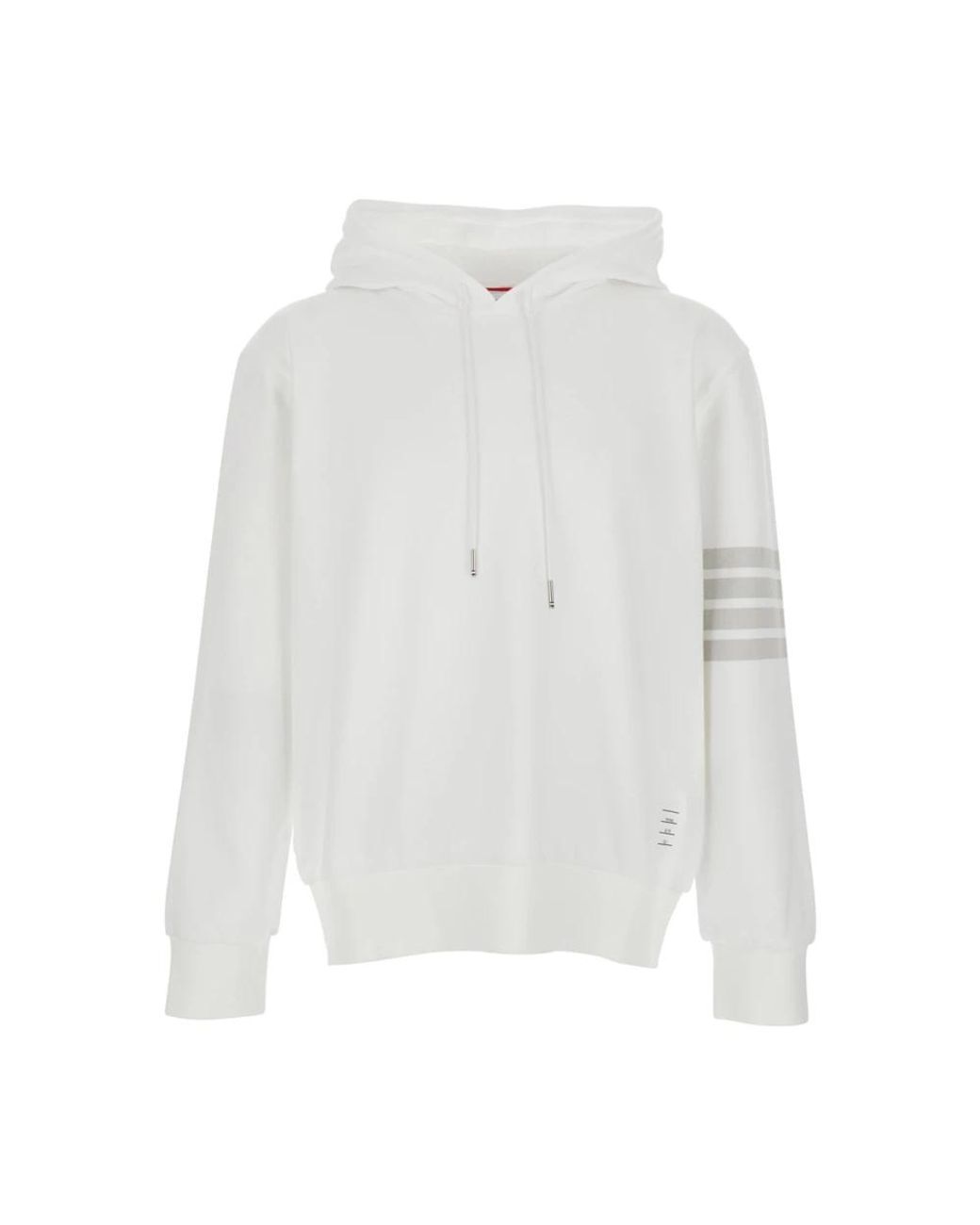 De Thom Browne Solid Loopback 4-Bar Hoodie combineert klassiek loopback katoen met het kenmerkende 4-bar mouwdetail van het label, voor comfortabele, alledaagse layering. Belangrijkste kenmerken: Wit | Katoen | Capuchon met trekkoord | Verlaagde schouders | Lange mouwen | 4Bar logo op de mouw | Rechte zoom | Afmetingen & pasvorm: Relaxte pasvorm | Samenstelling & verzorging: 100% Katoen Kleur: wit