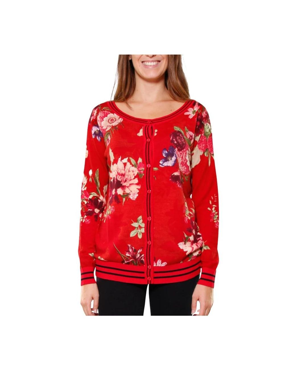 Truien & Vesten ,Rood ,Wol Gedrukte Wollen Cardigan Met Gestreepte Boorden voor dames