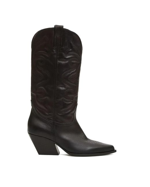 Schoenen ,Bruin ,Bruine Leren Cowboy Laarzen in het zwart voor dames
