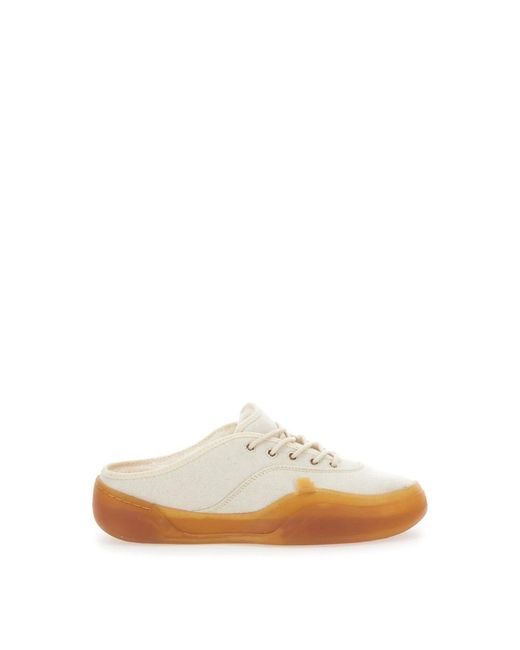 Profiteer van de beste deals! De ERL Low Skate Mule (model Erl 10Sh 02Dirtywhite) combineert een katoenen canvas bovenwerk met een contrasterende doorschijnende gomzool voor een skate-geïnspireerde, casual look. Belangrijkste kenmerken: Vuilwit | Katoen | Doorschijnende gomzool voor grip | Gewatteerde binnenkant voor extra comfort | Vetersluiting aan de voorkant | Instap-hak (mule-stijl) met veters | Gewatteerde faux shearling binnenkant | Ronde neus | Contrasterende zool | Verouderd canvas bovenwerk | Transparante buitenzool met ERL-artwork | Samenstelling & onderhoud: 100% katoen