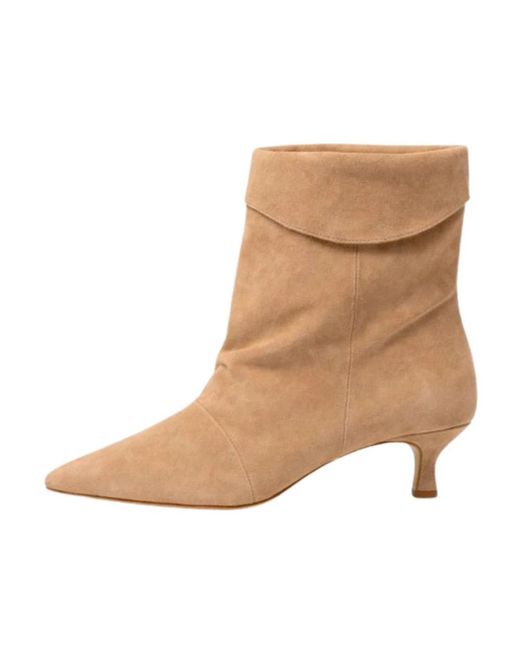 Profiteer van de beste deals! De Miriamrosa Antico enkellaars combineert een strak, modern silhouet met een brede schacht voor gemakkelijk dragen. Het suède bovenwerk, de beklede hak van 40 mm met metalen tip en de leren zool maken hem geschikt voor zowel alledaagse als meer geklede looks. Belangrijkste kenmerken: Beige | Suède | Brede schacht voor gemakkelijke instap | Vegan voering | Leren binnenzool voor ademend vermogen | Omgeslagen rand | Beklede hak met metalen tip | Ronde neus | Afmetingen en pasvorm: Hakhoogte: 40 mm | Brede schacht | Samenstelling en verzorging: Suède (bovenwerk) | Vegan materiaal (voering) | Leer (binnenzool) | Leer (zool)
