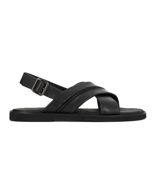 - Schoenen ,Zwart ,Leer Zwarte Leren Herensandalen Met Gekruiste Banden