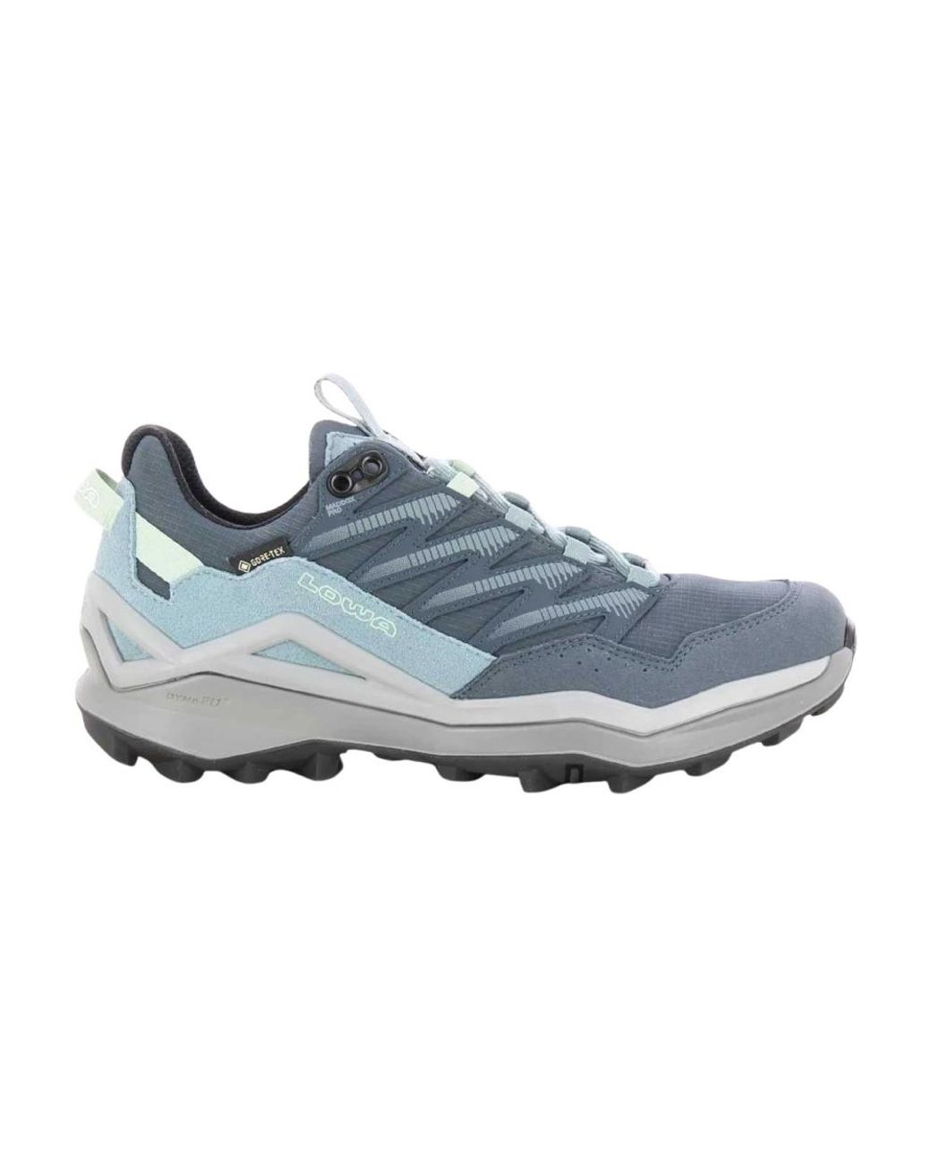 Lowa Maddox PRO GTX LO is een sneaker-achtige schoen van Lowa, hier getoond in Blue | Blauw. Modelnaam geïdentificeerd uit de input als "Maddox PRO GTX Lo"; er werd geen ontwerper-ID in de inputs verstrekt. Belangrijkste kenmerken: Blue | Blauw Kleur: blauw