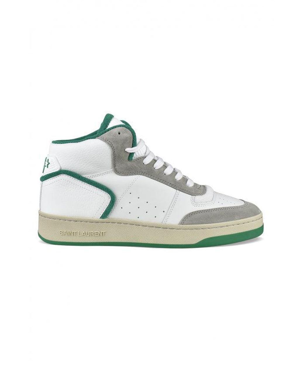 Sneakers SL/80 door Saint Laurent met geperforeerde huid aan de voorkant en inscriptie aan de zijkant. SL/80 leer- en suede sneakers. Kleur wit. Strakke gemiddelden. Rubberen zool. Kalfsvlees en katoenen huid. Geproduceerd in Italië.
