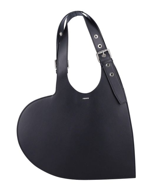 Lederen Belt Heart Tote door Coperni. Met:: Iconische hartvorm. Riemgreep met verstelbare gesp sluiten. Coperni in reliëf logo aan de voorkant. Zilverkleurige metalen afwerking. Hoogte: 25 cm breedte: 32,5 cm. Kleur: blauw