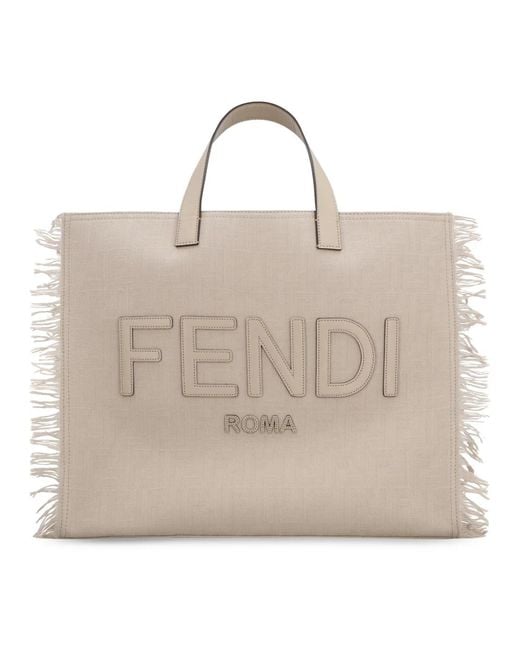 De Fendi Jacquard Fabric Tote is voorzien van het FF all-over jacquardmotief van het merk en franjes aan de zijkanten voor een onderscheidende tas voor dagelijks gebruik. Het ruime open vak, het interne ritsvak en de afneembare riem maken hem veelzijdig om in de hand of over de schouder te dragen. Belangrijkste kenmerken: Beige | Zand | Canvas en kalfsleer | Één open vak | Intern ritsvak | Twee leren handvatten | Afneembare stoffen riem | FF all-over motief | Decoratieve franjes aan de zijkanten | Zilverkleurige metalen hardware | Stoffen voering | Afmetingen en pasvorm: Breedte: 40 cm | Hoogte: 34 cm | Diepte: 20 cm | Riem: 100 cm | Samenstelling en onderhoud: 100% Katoen | 100% Kalf