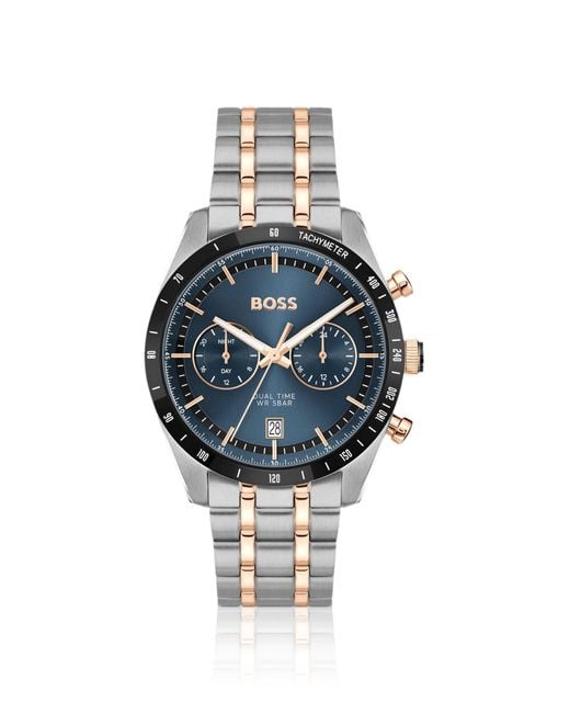 Horloge Met Blauwe Wijzerplaat En Tweekleurige Polsband voor heren