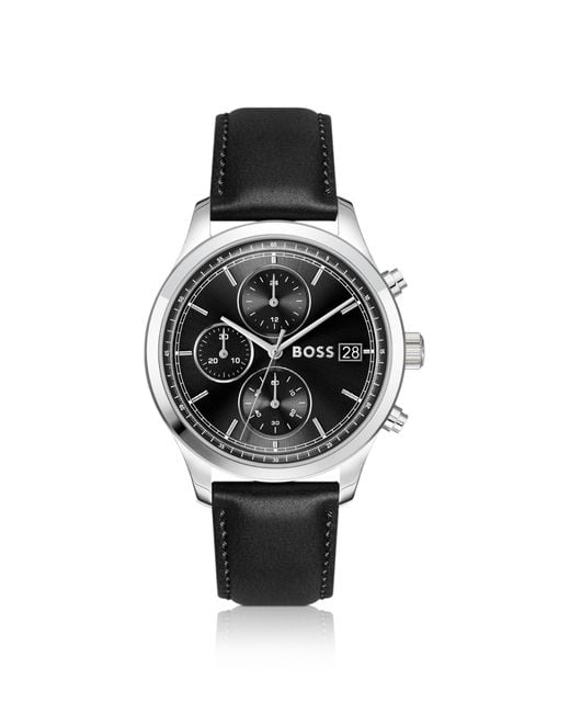 - Stratus-Chronograaf Met Zwarte Leren Polsband