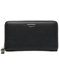 Ga naar Ferraris BoutiqueEmporio Armani Myea -portemonnee van zwart kiezelig faux leer met reliëflogo aan de voorkant. Interne compartimenten voor kaarten met muntzak. Zip sluiting, maat 20,5x11x2,7 cm. Kleur: zwart