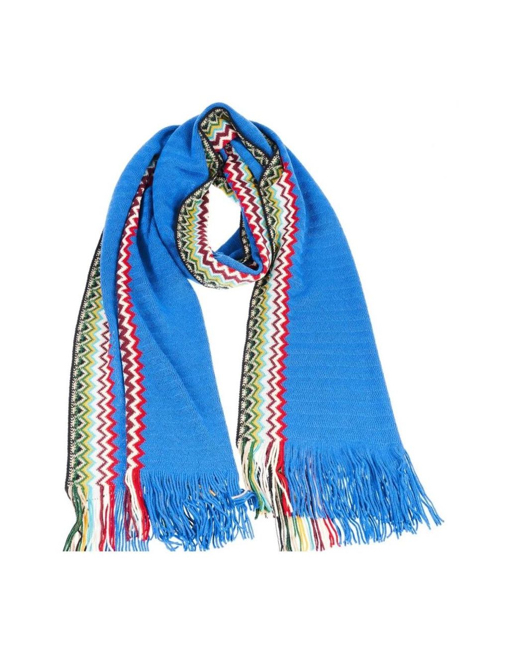 De Missoni sjaal met franjes combineert het kenmerkende veelkleurige geometrische motief van het merk met zachte wol en maraboe voor een warm, gestructureerd accessoire. De royale lengte en de franjes maken hem ideaal om in laagjes te dragen en een statement te maken. Belangrijkste kenmerken: Blauw | Multicolor | Wol | Warm | Pluche gevoel | Royale lengte om te wikkelen | Statement accessoire | Geometrisch zigzagpatroon | Franjes | Multicolor caleidoscoopprint | Afmetingen en pasvorm: 180 cm x 36 cm (plus franjes) | Samenstelling en verzorging: Wol | Maraboe
