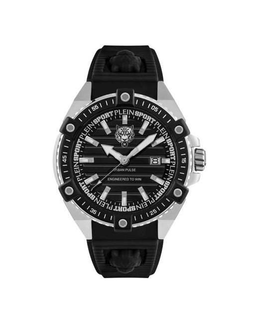 Het Plein Sport analoog horloge combineert een roestvrijstalen kast met een zwarte siliconen band voor een , alledaags uurwerk. Het quartz uurwerk en de waterbestendigheid tot 5 ATM zorgen voor een betrouwbare, gemakkelijk af te lezen tijdweergave voor dagelijks gebruik. Belangrijkste kenmerken: Zwart | Schwarz | Roestvrij staal | Quartz uurwerk | Waterbestendig tot 5 ATM | Siliconen band | Roestvrijstalen kast | Zwarte wijzerplaat | Analoge display | Gemakkelijk af te lezen indexen | Samenstelling & verzorging: Roestvrij staal | Siliconen | Afnemen met een zachte doek. Vermijd contact met oplosmiddelen en sterke chemicaliën. Bedien de kroon of drukknoppen niet onder water. Laat de waterbestendigheid periodiek controleren.