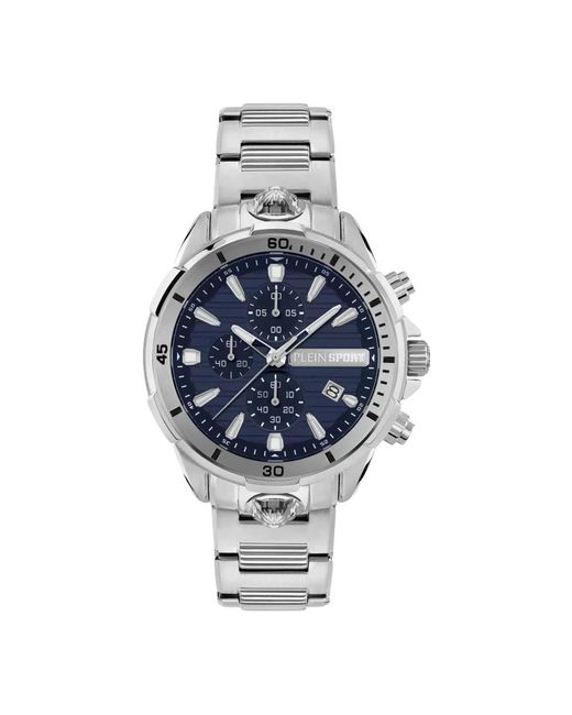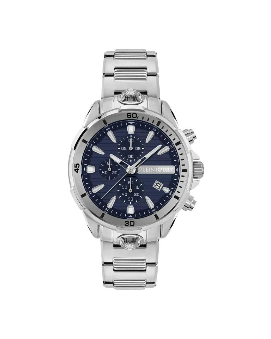 De Plein Sport Impact Chronograph Psbea 0524 combineert functionaliteit voor sport met een opvallende 46 mm roestvrijstalen kast en een markante blauwe wijzerplaat, geschikt voor dagelijks gebruik en actieve bezigheden. Belangrijkste kenmerken: Blauw | Blau | Roestvrij staal | Waterbestendig tot 5 ATM (50 m) | Mineraalglas | Japans quartz uurwerk voor precieze tijdmeting | Chronograaf (stopwatch) | Datumweergave | Lichtgevende wijzers en indexen | 46 mm roestvrijstalen kast | Blauwe chronograaf wijzerplaat met drie subdials | Roestvrijstalen armband met vouwsluiting | Tijgermotief op bandaanzetten | Afmetingen & pasvorm: 46 mm kastdiameter | 12 mm kastdikte | Samenstelling & onderhoud: Roestvrij staal | Mineraalglas | Reinig de kast en armband met een zachte doek; reinig de metalen armband met warm zeepwater en een zachte borstel. Vermijd sterke chemicaliën en langdurige blootstelling buiten de aangegeven waterbestendigheid. Laat het uurwerk periodiek controleren door een horlogemaker.