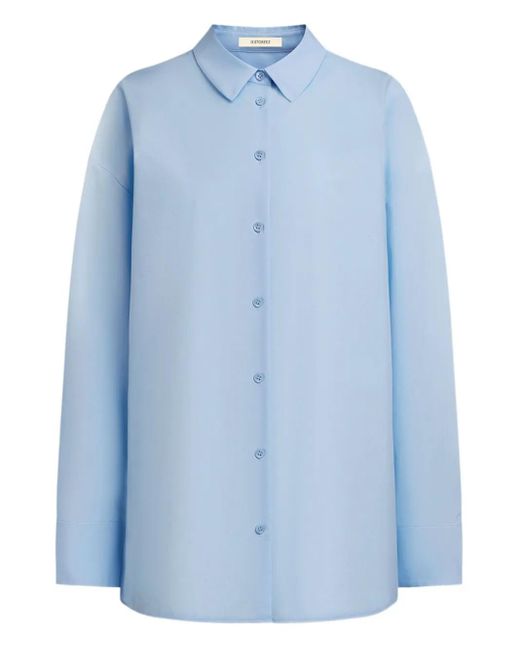 Blouse Van Gemerceriseerd Katoen in het blauw voor dames