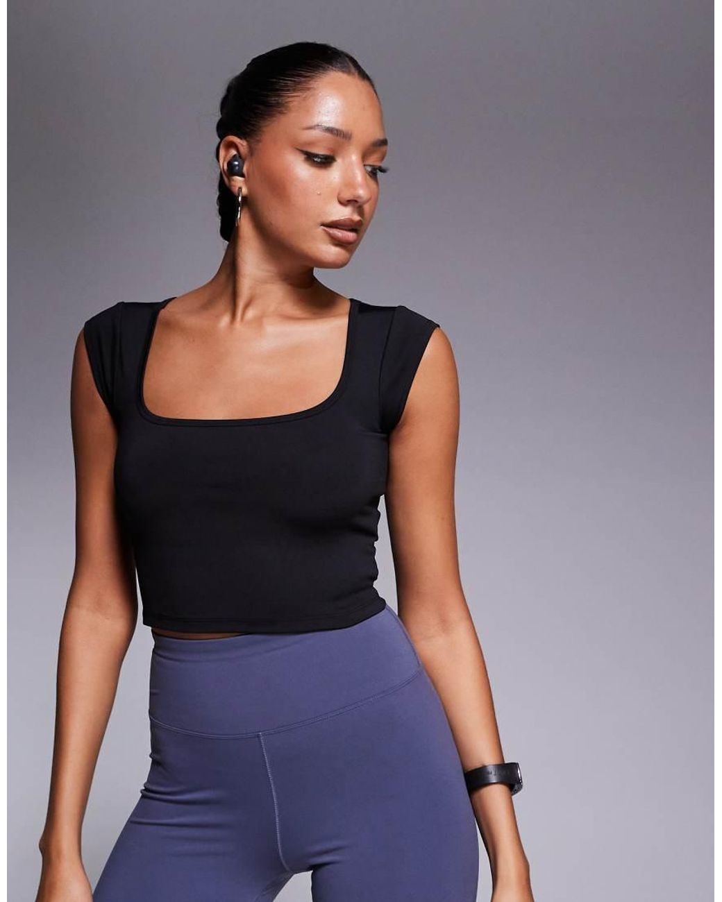 Tops van ASOS 4505 Effen model Vierkante hals Gekapte mouwen Slim-fit Kleur: blauw