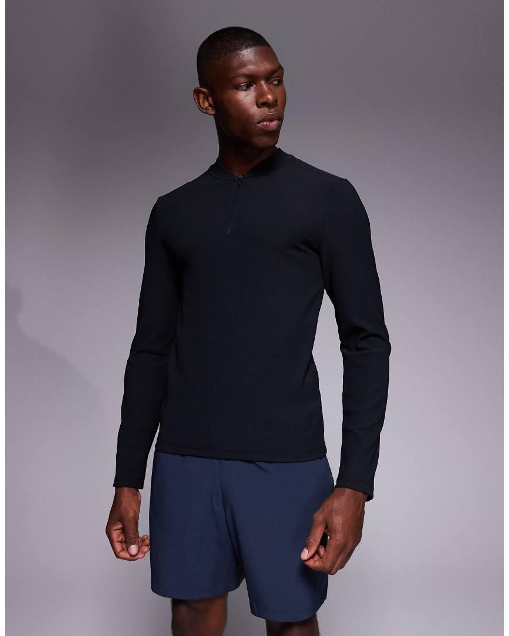 T-shirts en hemdjes van 4505 Basebalkraag Gedeeltelijke ritssluiting Lange mouwen Slim-fit Kleur: blauw