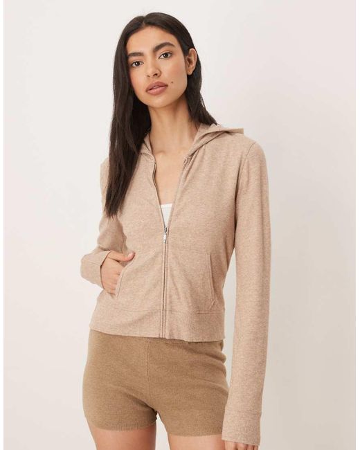 Loungehoodie Met Rits in het naturel voor dames