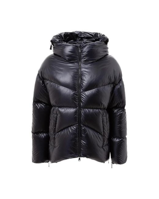 Jassen ,Zwart ,Leer Gewatteerde Jas Met Capuchon En Logo - Zwart