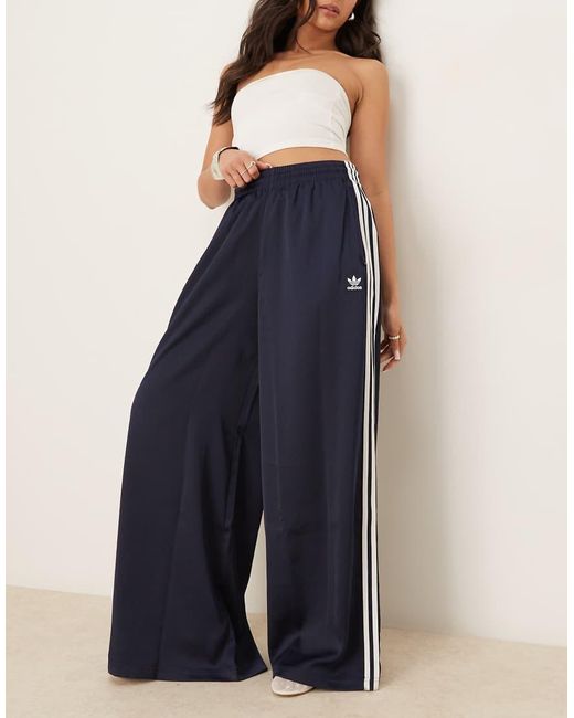 Broeken en leggings van adidas Originals Hoge taille Elastische tailleband Steekzakken Kenmerkend logo van adidas Wijde pijpen Kleur: blauw