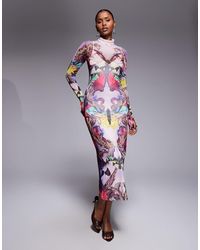 Ga naar ASOSJurken van AFRM Hooggesloten hals Lange mouwen Manchetten met duimsgaten Regular fit Kleur: paars