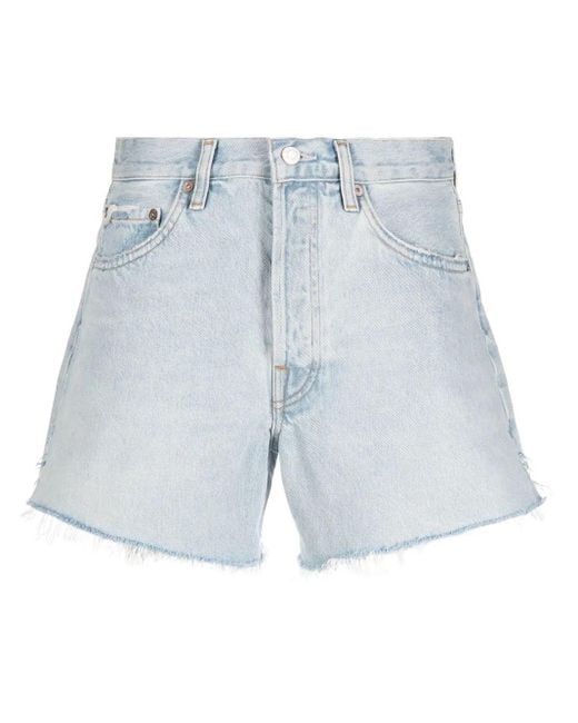 Lichtblauw, katoen, high-waist, riemlussen, knoop- en ritssluiting aan de voorzijde, traditionele 5-zakkenmodel en gerafelde afwerking. Size: 25. Gender: Female. Material:katoen. Kleur: blauw
