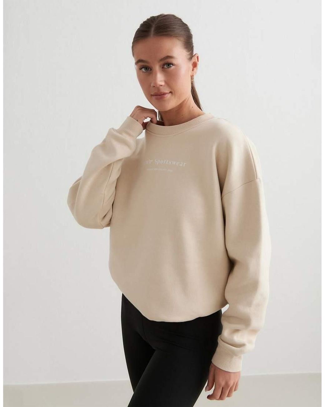 Hoodies en sweatshirts van Aim'n Maak kennis met je nieuwe basiskledingstuk Met ronde hals Verlaagde schouders Logoprint Regular fit Kleur: naturel