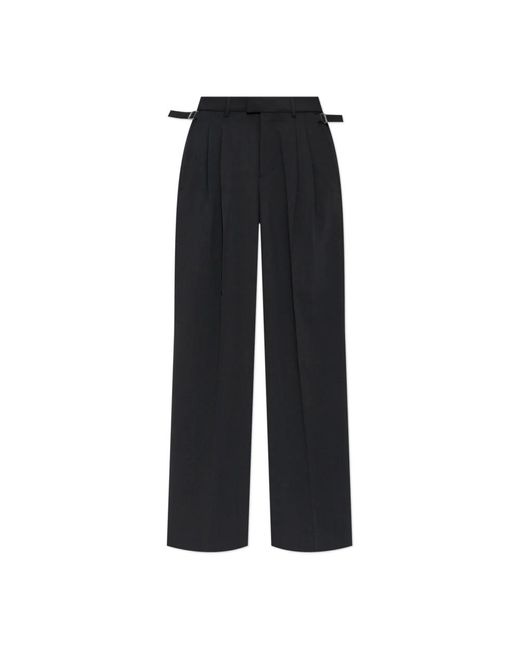 Wool Trousers van AMI Alexandre Mattiussi zijn het toonbeeld van Parijse elegantie, geïnspireerd door de tijdloze nonchalance van de modesteden. Vervaardigd in een diepe zwarte of zeer donkere grafietkleur, weten ze te imponeren met hun verfijnde afwerking en kenmerkende silhouet, dat wordt gedefinieerd door een wijde, lange wijde pijp en een nauwkeurig geperste vouw. Een hoge taille, brede riemlussen en decoratieve externe zijbanden met metalen gespen creëren een opvallend, modern detail dat traditie perfect vermengt met avant-garde. De unieke stof - premium, zacht, mat wol - benadrukt het luxueuze karakter van deze broek en zorgt voor uitzonderlijk draagcomfort. Waarom ZOU U DIT Product Kopen? * Exclusief ontwerp ondertekend door een gerenommeerde Parijse ontwerper * Verfijnde, klassieke vorm met moderne details * Perfect voor zowel formele als alledaagse outfits * Prestigieuze wol met uitzonderlijke zachtheid en duurzaamheid * Kenmerkende accenten - wijde pijpen, brede riemlussen en decoratieve gespen Model's Afmetingen Hoogte: 176 cm Buste: 85 cm Taille: 60 cm Heupen: 89 cm Model draagt maat: XS Kleur: zwart