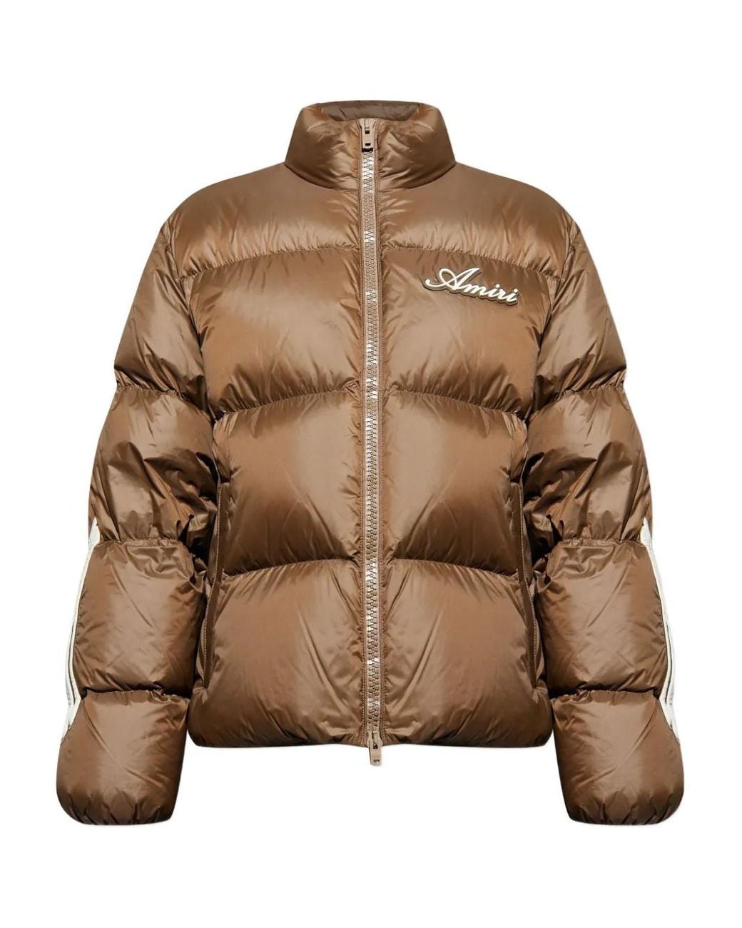 Bruin logodetail ritssluiting hoge hals botdetail lange mouwen Size: XS. Gender: Male. Material:nylon.