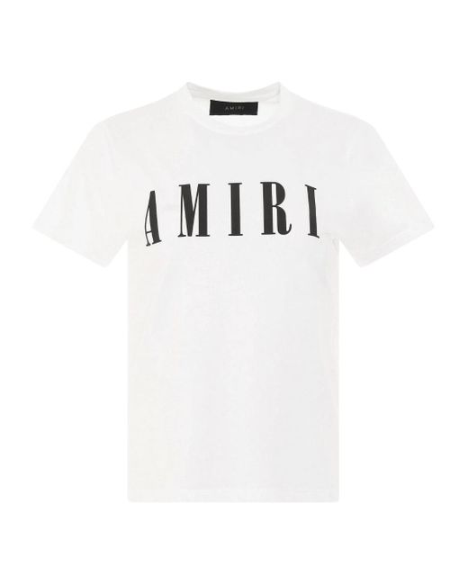 Wit T-shirt met korte mouwen, Amiri-merk, T-shirt met ronde hals, normale pasvorm, maat valt normaal, 100% katoen, gemaakt in de VS, wit T-shirt. Kleur: wit