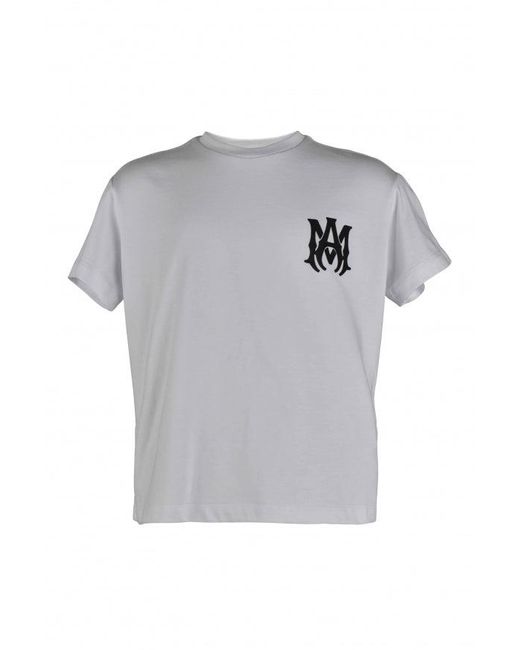 Amiri T-shirt in wit katoen. Black MA -logo op de borst gedrukt. Zwart Amiri -logo op de rug afgedrukt. Korte mouwen. Gemaakt in Italië. Kleur: grijs