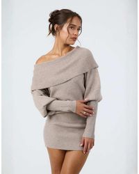 Aria Cove Gebreide Mini Trui-Jurk Met Bardot-Hals in het roze voor dames