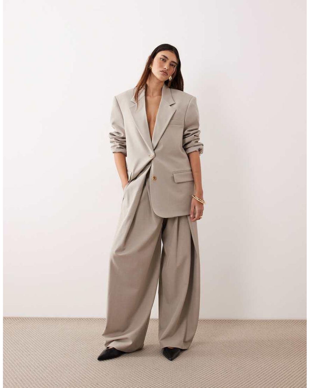 Broeken en leggings van ARRANGE Plooidetail aan de voorkant Steekzakken Achterzakken Wijde pijpen Kleur: naturel