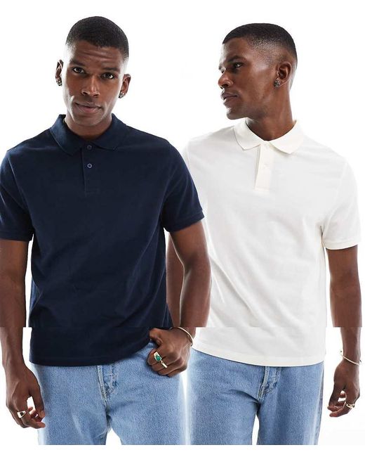Poloshirt van ASOS DESIGN Set van twee stuks Met polokraag Gedeeltelijke knoopbies Korte mouwen Regular fit Kleur: blauw