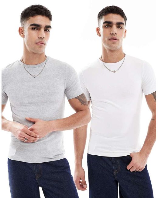 T-Shirts en hemdjes van ASOS DESIGN Set van twee stuks Effen model Met ronde hals Korte mouwen Muscle-fit Kleur: wit