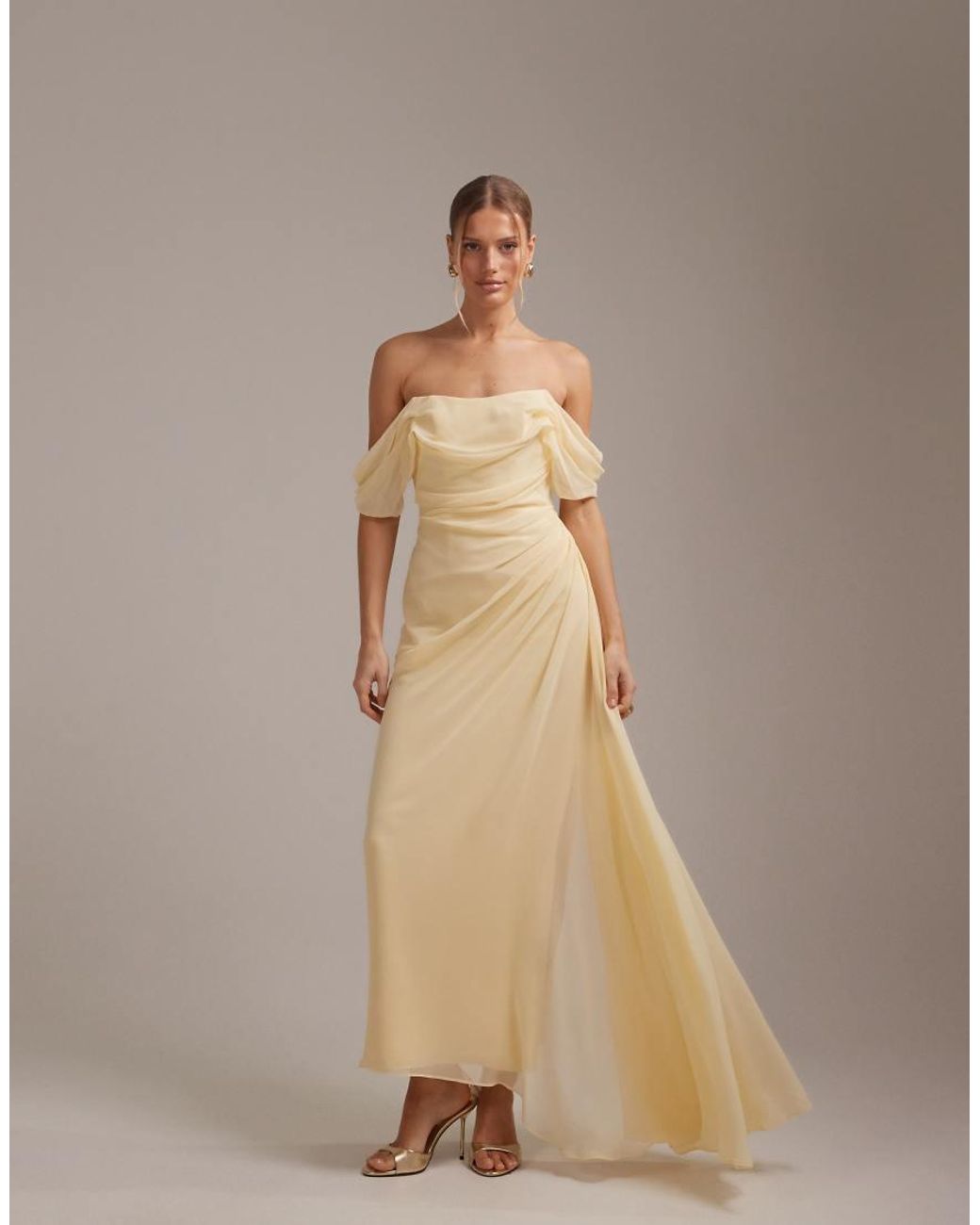 Jurken van ASOS DESIGN Bardot-halslijn Verlaagde mouwen Body met structuur Gedrapeerde details Ritssluiting op de rug Slim-fit Kleur: naturel