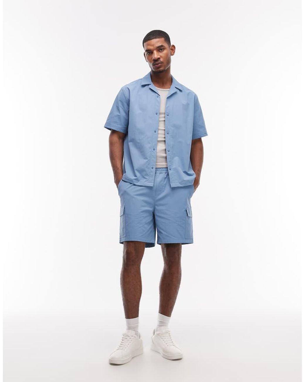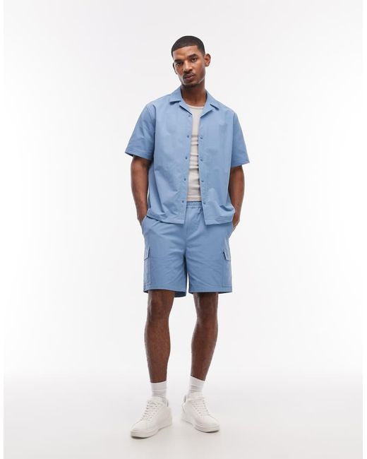 Shorts van ASOS DESIGN 4-zijdige elastische stof Ontworpen voor bewegingsvrijheid en comfort Flexibel gevoel voor dagelijks gebruik Elastische tailleband Steekzakken Cargozakken Achterzakken Kortere lengte Regular fit Kleur: blauw