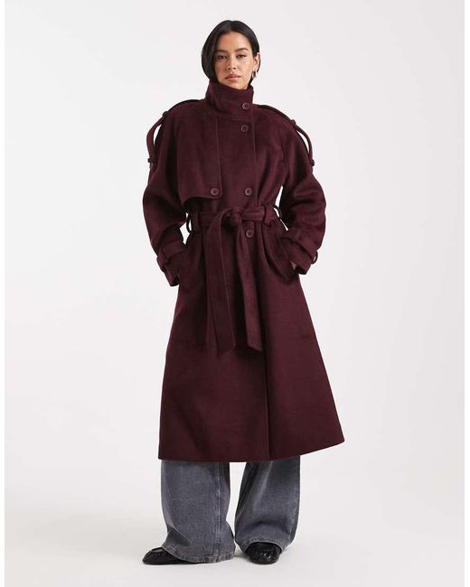 Jassen & jacks van ASOS DESIGN Epauletten met knopen Paneel met knoopsluiting Opstaande kraag Knoopbies Gestrikte taille Steekzakken Stormflap Ruimvallende snit Kleur: rood