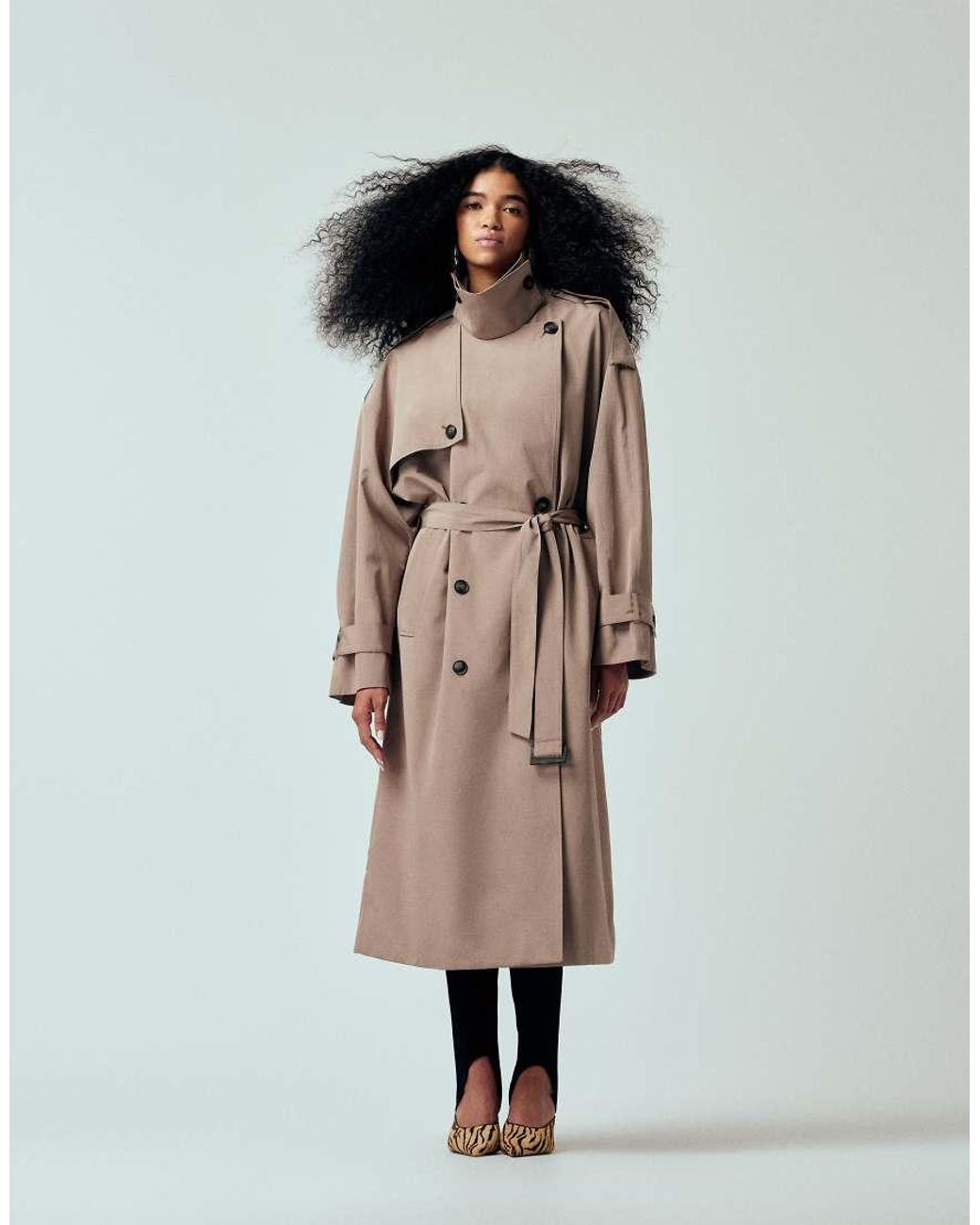 Oversized Lange Trenchcoat Met Ceintuur in het naturel voor dames