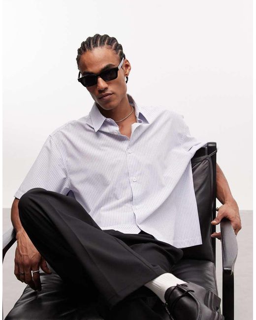 Overhemd van ASOS DESIGN Brede kraag Knoopbies Korte mouwen Gestreept motief Grafische print op de rug Rechte pasvorm Oversized pasvorm Kleur: wit